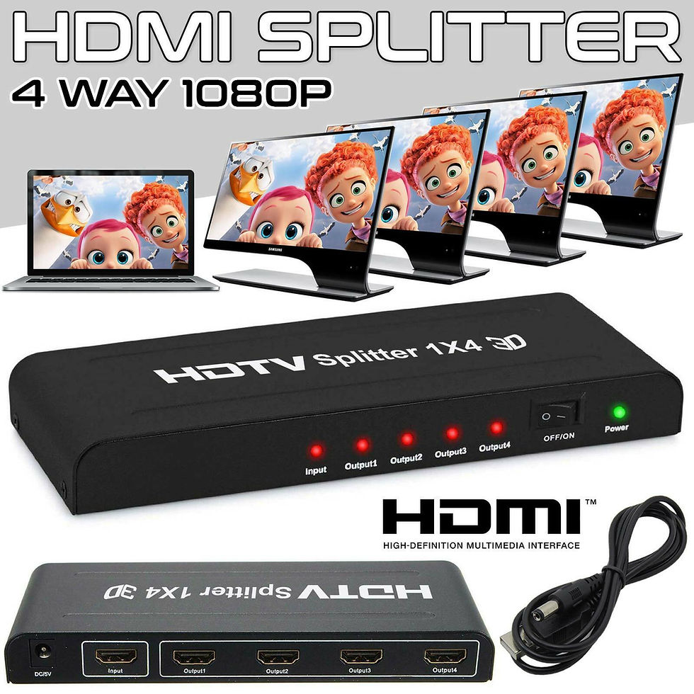 4 Way HDMI Splitter Amplifier Switcher Hub 1080p For HDTV Sky Box STB PS3 Xbox